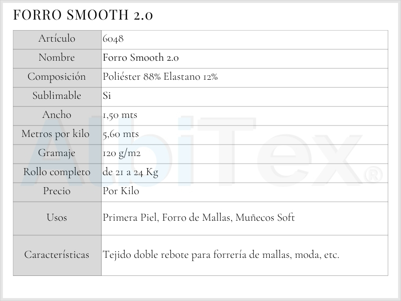 Características: Tejido doble rebote. Ideal para forrar trajes de baño, tops deportivos, lencería y moda.