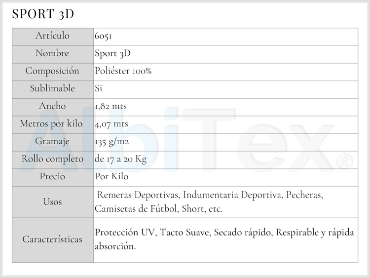 Sumá textura, diseño y tecnología a tus prendas con Sport 3D, el tejido técnico que redefine la estética deportiva.